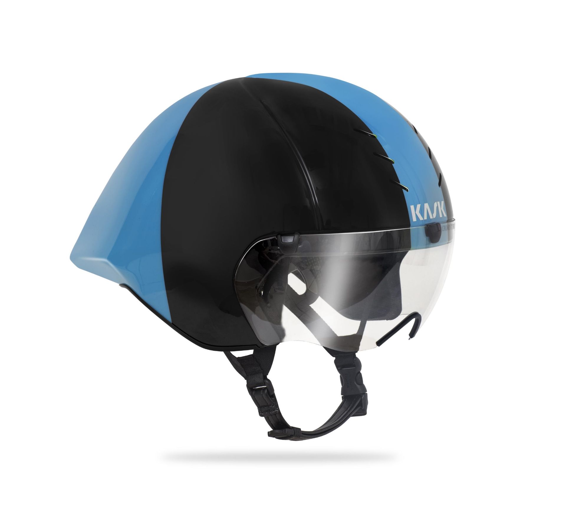 : het innovatieve magnetische vizier is gepatenteerd door KASK. Het vizier is geïntegreerd in de helm dankzij 5 magneten. De totale hechting van het vizier aan de helm zorgt voor een continue luchtstroom en een goede aerodynamica.